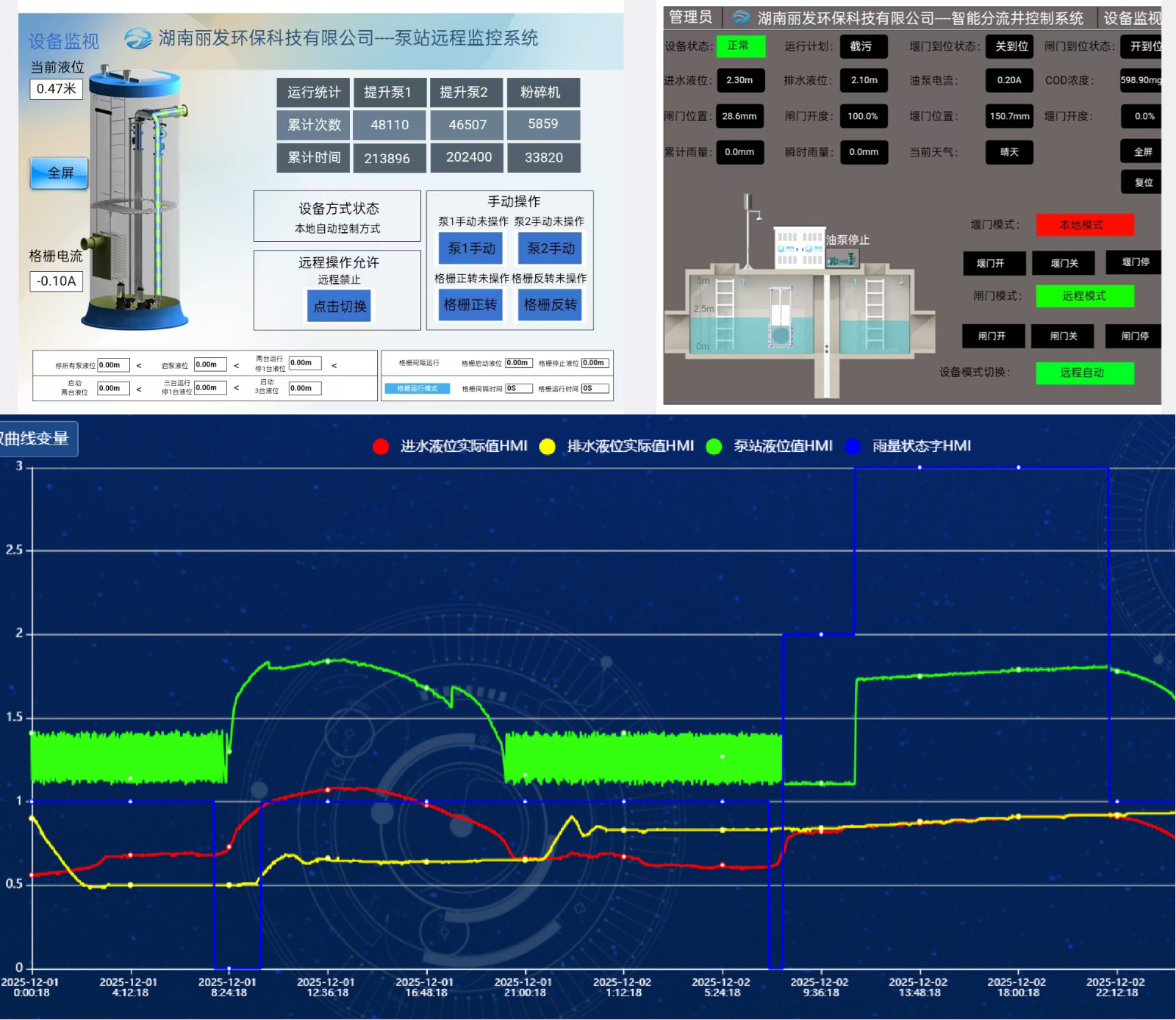 智能分流・精准截污:实时监测水位、流量、COD / 氨氮等水质参数 + 设备状态,根据水质 / 水量自动切换模式,初期雨水截流、中后期雨水直排,提高溢流污染去除率